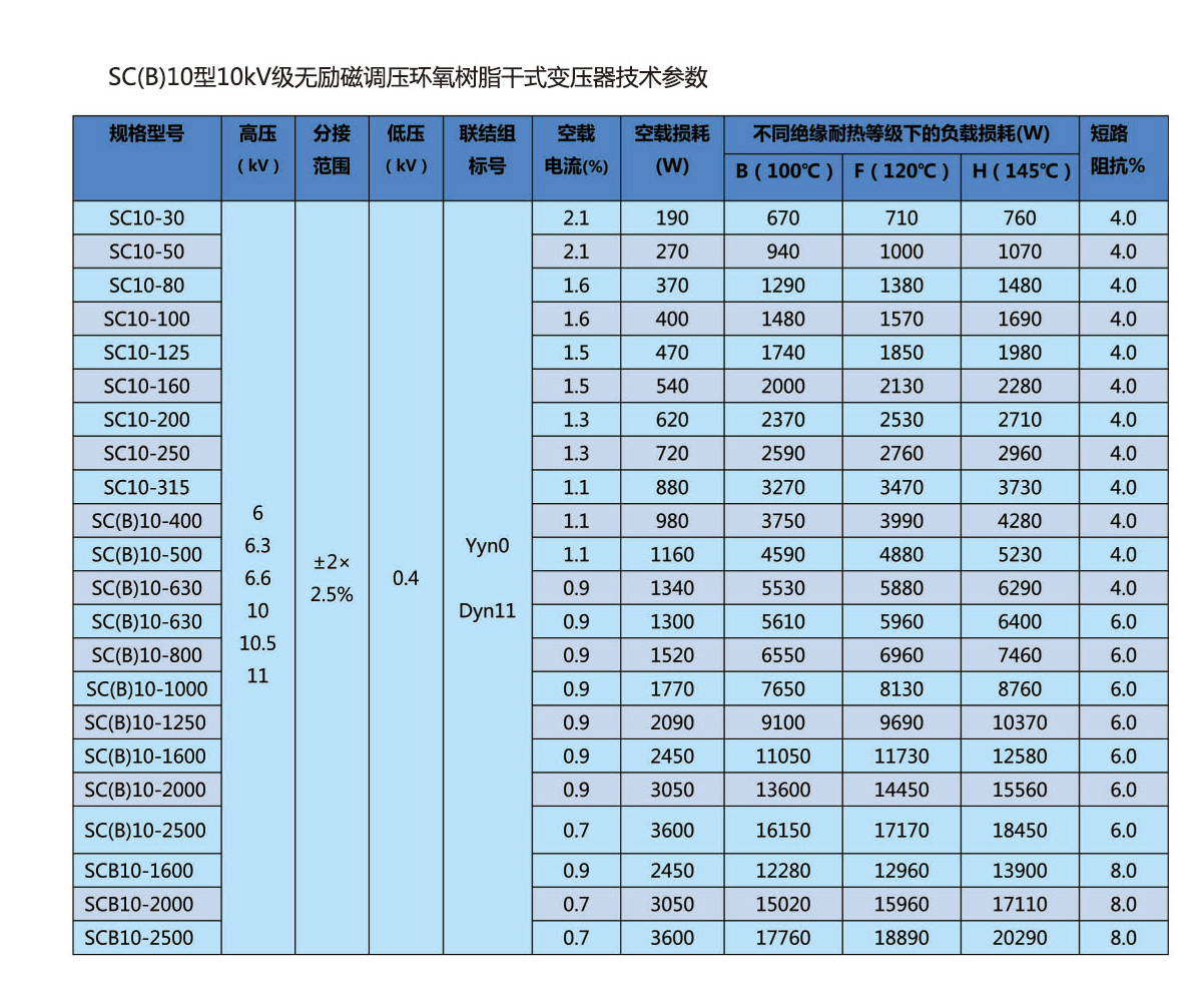 SC(B)12型10KV级无励磁调压环氧树脂干式变压器技术参数